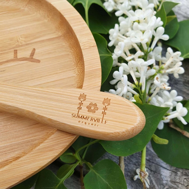 Skeden är tillverkad i silikon och bambu, vilket gör den lätt att greppa och bekväm att hålla i. Silikonets mjukhet gör den behaglig i munnen.